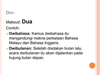 Dwibahasawan merupakan orang yang dapat berbicara dalam dua bahasa seperti bahasa nasional dan bahasa asing bahasa daerah dan bahasa nasional. Entri membuat dari dua kamus dwibahasa tersebut didapati tidak lengkap pembahagian maknanya apabila dibandingkan dengan kamus rujukan Kamus Dewan Edisi Keempat KD4. Hal ini jelas dinyatakan dalam peribahasa.